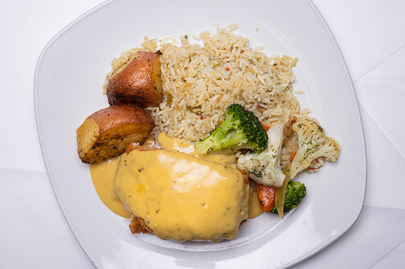 Home breaded chicken breast, cold water shrimp. Shredded crab, mozzarella, béarnaise.