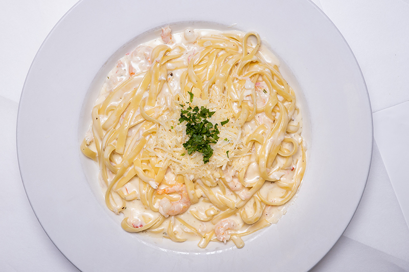 Coldwater shrimp, shredded crab, creamy white wine alfredo.