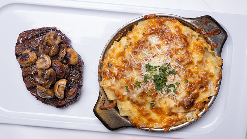 Gluten-free. Eight ounces premium CAB® with sautéed seasoned button mushrooms.